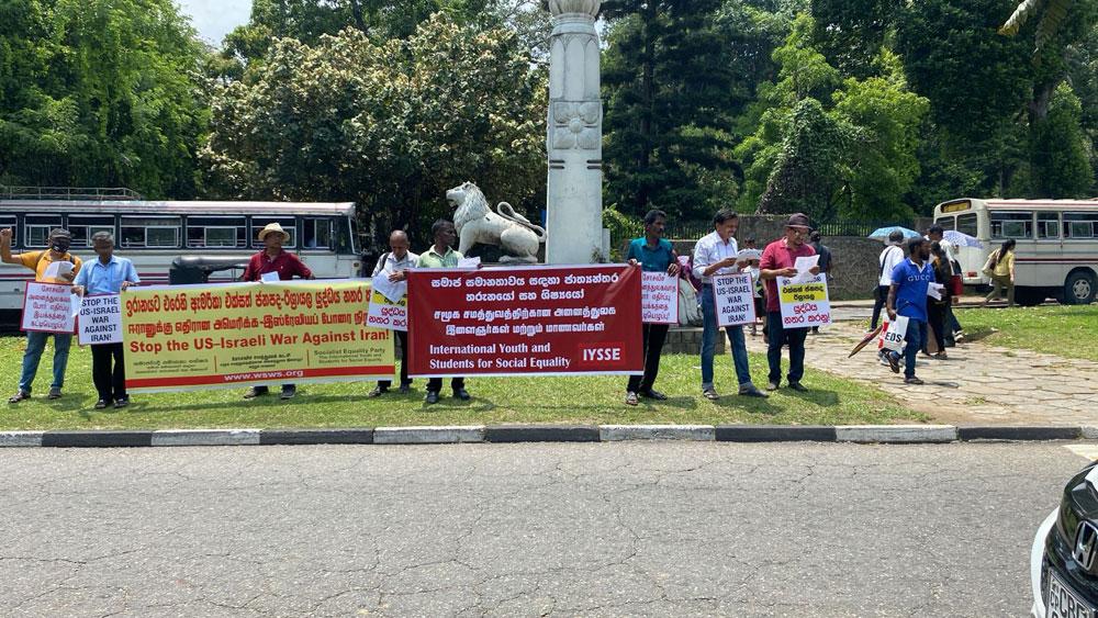 ඉරානයට එරෙහි ඇමරිකානු-ඊශ්රායල යුද්ධය අවසන් කරන ලෙස ඉල්ලා සිටිමින්, ශ්රී ලංකාවේ සමාජවාදී සමානතා පක්ෂයේ සාමාජිකයින් පේරාදෙණියේ ගලහ හන්දියේදී විරෝධතාවයක් පැවැත්වීය.