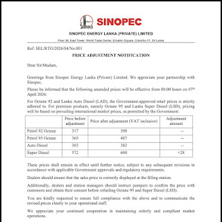 නිවේදනයක් නිකුත් කරමින් එම සමාගම වැඩිදුරටත් සඳහන් කළේ, ඔක්ටේන් 92 පෙට්රල් සහ ලංකා ඔටෝ ඩීසල් (LAD) රජය අනුමත කළ මිල ගණන් යටතේම අලෙවිකරන බවය.