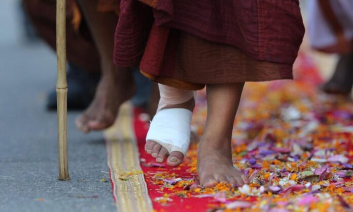 මෙම සාම පා ගමන (22) දින උදෑසන දඹුල්ල නගරයෙන් ආරම්භ වූ අතර මේ සඳහා සහභාගී වූ ඇමරිකානු ජාතික භික්ෂුවක් වයස අවුරුදු (38) වූ එම් ධර්මවර භික්ෂූන් වහන්සේ පා ගමන අතරතුර මාතලේ කෝන්ගහමුල ප්රදේශයේදී අපස්මාරය රෝගී තත්ත්වයක් හේතුවෙන් ගිලන් රථයක ආධාරයෙන් මාතලේ දිස්ත්රික් රෝහල වෙත ඇතුළත් කර තිබේ.