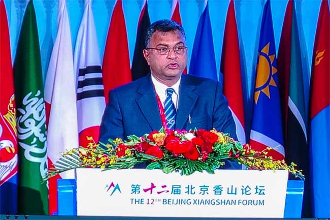 “සියලු ජාතීන්ගේ නීත්යානුකූල හා අනන්ය වූ ආරක්ෂක අපේක්ෂාවන්ට ගරු කරමින් සාකච්ඡා මාර්ගයෙන් මතභේද විසඳා ගත යුතුය” යනුවෙන් චීන ජනාධිපති Xi Jinping මහතා විසින් සිදුකළ ප්රකාශය උපුටා දැක්වමින් ආරක්ෂක ලේකම්වරයා මේ බව පැහැදිලි කළේ සැප්තැම්බර් 17 දින සිට 19 දින දක්වා චීනයේ බීජිං ජාත්යන්තර සම්මේලන මධ්යස්ථානයේදී පැවැත්වූ 12 වැනි Beijing Xiangshan සමුළුව අමතමිනි.