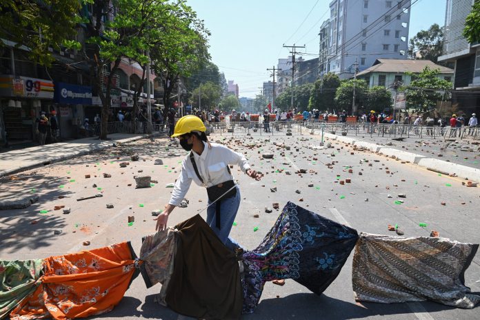 එක් එක් මියන්මාර සමාජ ක්රියාකාරිනියක ඇගේ සමාජ ජාලා ගිණුමක එවැනි සටහනක්ද තබා තිබුණා.මේ තත්ත්ව තවත් උග්ර වෙමින් මියන්මාර බලය පැහැර ගත් හමුදා නායකයා ගේ ඡායාරූප සනීපාරක්ශක තුවා වල අලවා මහා මාර්ග වල විසිකර දැමුවේ හමුදා සොල්දාදුවන් ඔවුන්ගේ නායකයාගේ මුහුණ මතින් අඩිය තැබීම වැළැක්වීමටයි.නිර්භීත කාන්තාවන් සමඟ එක්වූ පිරිමින් ද මේ සරම් හිස වටා දවටා ගනිමින් කාන්තා විරෝධතා ව්යාපාරයට සහාය පළ කරන්නට පටන් ගත්තා.එක්සත් ජාතීන්ගේ මානව හිමිකම් වාර්තා වලට අනුව මියන්මාර විරෝධතා ව්යාපාර වලදී වැඩිපුරම මියගොස් ඇත්තේද කාන්තාවන්.