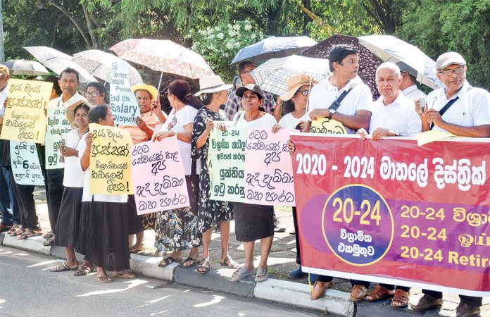 2020-2024 විශ්‍රාමිකයෝ සහන ඉල්ලා පාරට බසිති