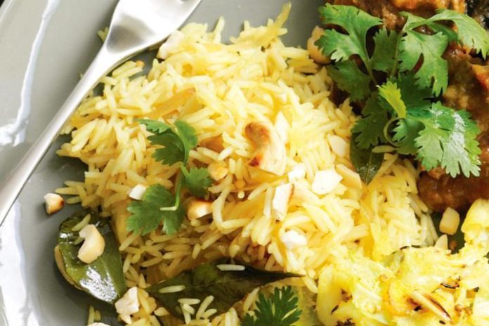 බඳුනකට මාගරින් දමා රත්කර එයට ළූණු සුදු ළූණු ළූණු සුදු ළූණු කරපිංචා හාල් දමා බැදෙන්න හැර සුදු ගම්මිරිස් එකතු කර වතුර කෝප්ප තුනහමාරක් දමා තැම්බෙන්නට හරින්න .බත ඉදුණු පසු බැදගත් කජු සහ රටකජු ,රට කොට්ටං තම්බාගත් ග්රීන් පීස් සහ තම්බාගත් බිත්තර කුඩාවට කපා කොත්තමල්ලි කොළ සමඟ සකසන්න .