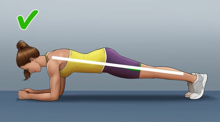 • ඔබේ බඩ තදින් තබාගත යුතු අතර ඔබේ ඉණ ඔබේ උරහිස් සහ විලුඹ සමඟ සරල රේඛාවක් ලෙස තිබිය යුතුයි.