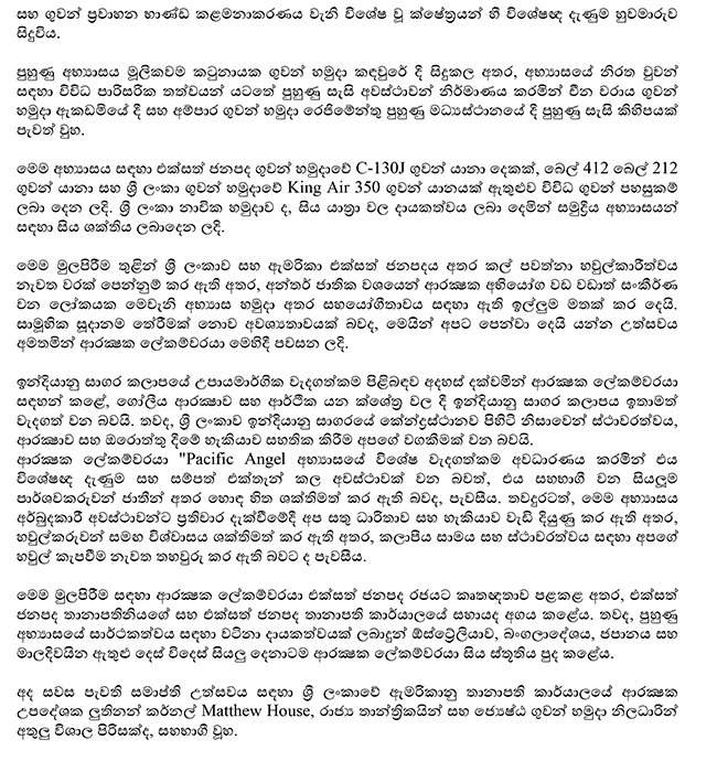ශ්රී ලංකා ගුවන් හමුදාවේ හා අමෙරිකා එක්සත් ජනපද තානාපති කාර්යාලයේ සත්කාරකත්වයෙන් හා රටවල් රැසක සහභාගිත්වයෙන් පුහුණු අභ්යාසය දින පහක් පුරා පැවති විය.