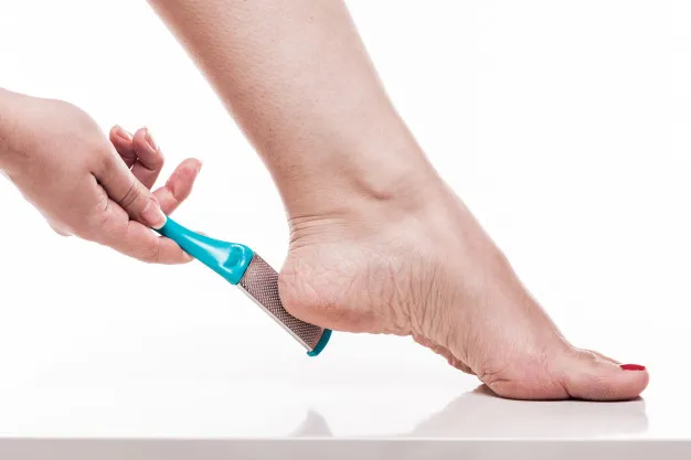 - Dry skin cutter එකකින් කකුලේ රළු සම ඉවත් කර ගන්න.