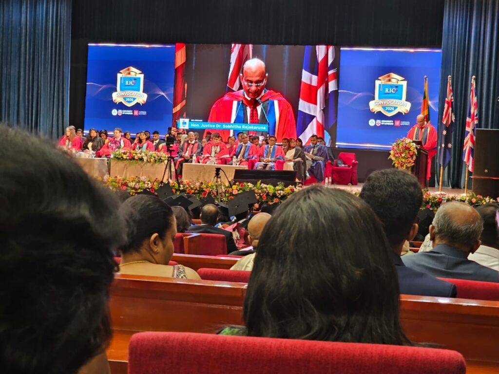 2026 පෙබරවාරි 21 වන දින බණ්ඩාරනායක අනුස්මරණ ජාත්යන්තර සම්මන්ත්රණ ශාලාවේදී පැවැත්වුණු ලන්ඩන් විශ්ව විද්යාලයට අනුබද්ධ RI කැම්පස් හි වාර්ෂික උපාධි ප්රදානෝත්සවයේ ප්රධාන ආරාධිත අමුත්තා ලෙස ගරු විනිසුරු ආචාර්ය සෝභිත රාජකරුණා මහතා සහභාගී වී තිබේ.